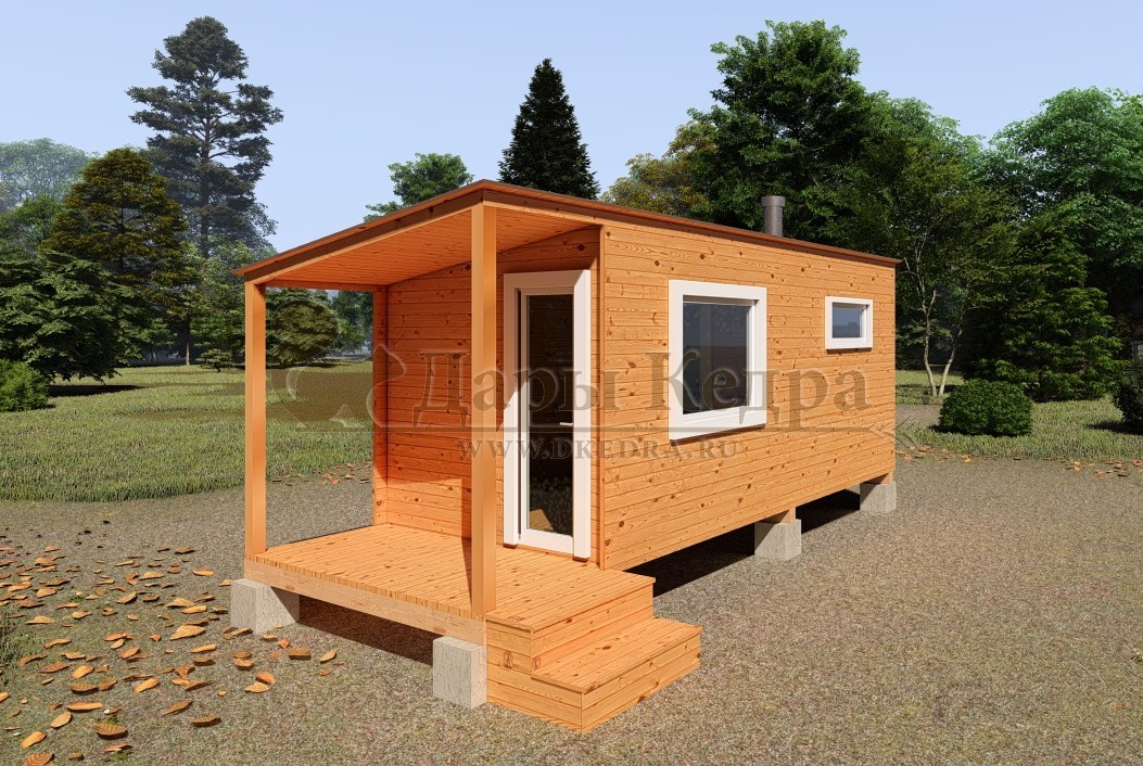 Каркасно-щитовая баня из кедра «Сканди» с верандой Это классическая прямоугольная модель бани с двумя отделениями: предбанником и парилкой, а так же удобной терассой. Предбанник оснащен лавочкой и вешалкой. Парилка оборудована двухуровневым открытым полком и печью. Время растопки такой бани не превышает 30 минут. Каркасно-щитовую баню можно заказать как в готовом, так и в разборном варианте. В разборной модели готовые щиты из кедра быстро собираются в полноценное строение, что также позволяет исключить лишний строительный мусор. Такая баня не требует полноценный фундамент, поэтому при необходимости ее можно перенести в другое место. Древесина кедра насыщена эфирными маслами и фитонцидами, которые активируются при воздействии температур. Таким образом, парение в каркаско-щитовых банях из кедра становится еще полезнее.