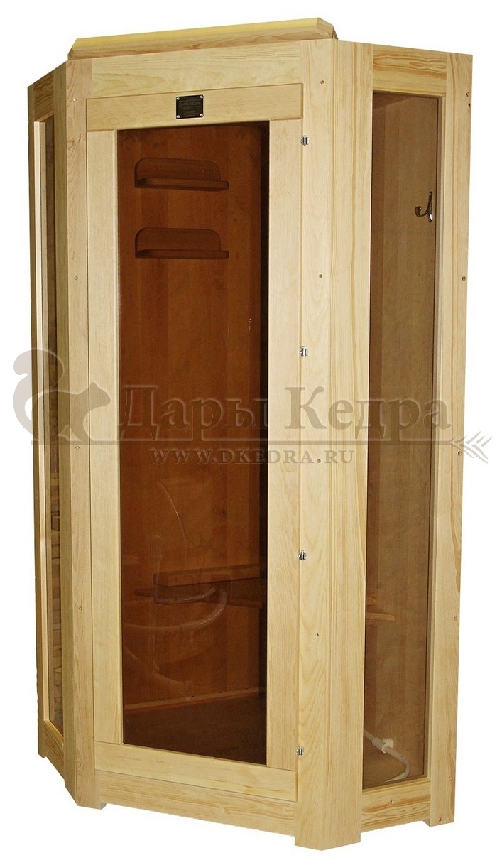 Деревянная угловая душевая кабина из кедра Угловая душевая кедровая кабина с бронзированной стеклянной дверью, может быть выполнена в ваших размерах и с вашими предпочтениями. Фасадные стенки по вашему выбору сделаем стекло или дерево. Кабина доставляется в разобранном виде, чтоб упрощает доставку и занос. Собирается по инструкции, всё необходимое есть в комплекте. Сантехника не входит в стоимость, но мы готовы подобрать бюджетный вариант и добавить в заказ. Кабина выполняется из массива кедра 40-45 мм щитами цельными, что делает её долговечной. Рекомендуем добавить покрытие внутри и снаружи. Наши душевые можно укомплектовать парогенератором с паропроводом и сделать внутри сиденье и полочки, что позволит её использовать еще и как паровую кабину (хаммам) для прогрева всего тела. Изделие собирается вручную мастером, возможны незначительные отличия от фото. Обращаем Ваше внимание, что потолочный светильник не входит в стандартную комплектацию душевой кабины, как и сантехника. Внутреннее оснащение согласовывайте с менеджером. Древесина кедра богата эфирными маслами, которые при воздействии температур испаряются в воздух, что благотворно воздействует на организм во время принятия душа.