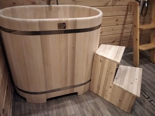 Подсмотрели купель у друзей, только у них овальная. Они сразу посоветовали если покупать, то только у Даров Кедра. Мы выбрали угловую, очень классно, что можно было выбрать и форму, и нужные опции, мы попросили поставить клик-клак. Теперь такая красота есть и у нас! Большое спасибо!