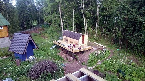 Здравствуйте! Давно собиралась написать отзыв и послать фотографии, но все как то руки не доходили. Сначала хочу сказать огромное спасибо всему коллективу Дары Кедра и отдельно Виктории, с которой мы постоянно общались по телефону. Все наши пожелания были учтены, все было корректно, оперативно и информативно. Мы конечно же, нервничали, не обманут ли, доедет ли, а вдруг не понравится, вдруг это только на фотографиях так красиво и интересно... И вообще, такая необычная баня, не будет ли там темно и страшно... Ох, сколько было сомнений и вот она приехала... Собрали сами, за 3 дня - очень хотелось посмотреть, что же это такое... Два дня мужу помогали друзья. Доделывал уже потом один. В процессе оказались 2 доски треснутые, пришлось склеивать. Больше никаких проблем не появилось. Инструкция понятная, никаких вопросов не возникло. Покрыли дополнительно мойку пропиткой. И вот - тадам! - готово! Можно топить и пользоваться! Ну что сказать - это просто чудо! Реальность превзошла все ожидания ))) А какой запах! Она так пахла, что все соседи удивлялись, какой необычный аромат! Внутри светло, уютно, для 4-х человек - идеально, места всем хватает. Муж поставил дополнительные лампочки в каждом помещении, поэтому света предостаточно. Установили водогрей за дверью в раздевалке. Хотя бака с горячей водой, который нагревается в парилке, достаточно. Просто голову помыть проточной горячей водой, более комфортно...Очень удобно оказалась печка с загрузкой на улице, - в бане нет мусора, нет дыма. Да прогуляться, проверить или подложить дров-после парилки - только в удовольствие. Топили каждый день, почти все лето. Такое вот у нас появилось развлечение на даче - каждый вечер в бане, и дети, и родители, и гости - все там. Уже с утра начинаются разговоры, во сколько пойдем вечером в баню...Греется она быстро, через час неспешной топки, уже можно идти парится. Родители дожидались, когда баня остынет до 60-50 градусов. В общем, довольны все! Спасибо огромное! Это потрясающее чудо и волшебство! Пожалели, что не заказали навес над входом. Доделывали уже сами. И не хватает ступенечек, порог высоковат. Тоже достроили. Но все это такие мелочи, по сравнению с самой баней! Она великолепна! И круглая форма придает ей такую необычность и изюминку.... В общем спасибо, мы всем рекомендуем вашу фирму и ваши бани! А сами мечтаем теперь о купели с холодной водой - поставить рядом и нырять после парной )))). Может быть закажем на следующие год. Спасибо еще раз за это чудо!
