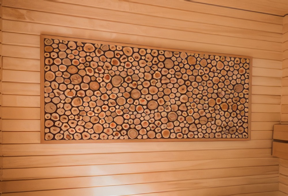 Можжевельник благотворно влияет на организм. Среди положительных эффектов можно отметить: активацию метаболизма, ускорение обменных процессов. Декоративные панно отлично вписываются в интерьеры парилок. Их вешают на стену, потолок, получая от этого двойную пользу в виде украшения комнаты и насыщения воздуха целебными веществами. Размер полотна 40X80 см.